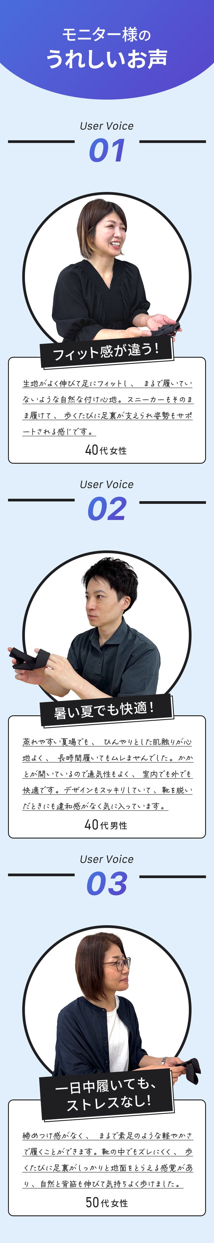 「指が自然に動いて歩きやすく、足が軽く感じた」(40代男性)