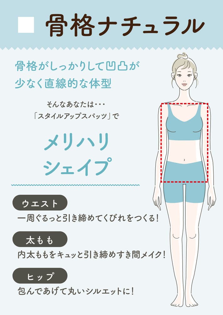 「骨格診断士が作ったスタイルアップスパッツ」で、骨格タイプごとのお悩みをしっかりケアしながら、美しいスタイルを目指しましょう!