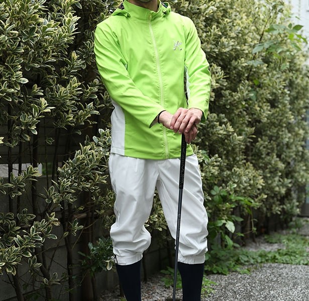 ゴルフのプレー中に多少の雨が降っても安心です。ジャケットとニッカポッカの上下の色の組み合わせは、自由にお選び頂けるように致しました。