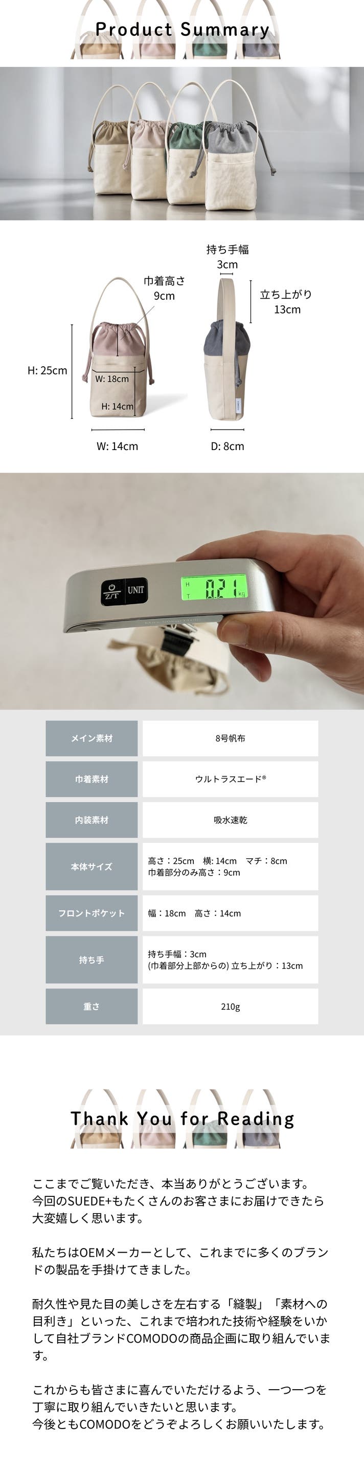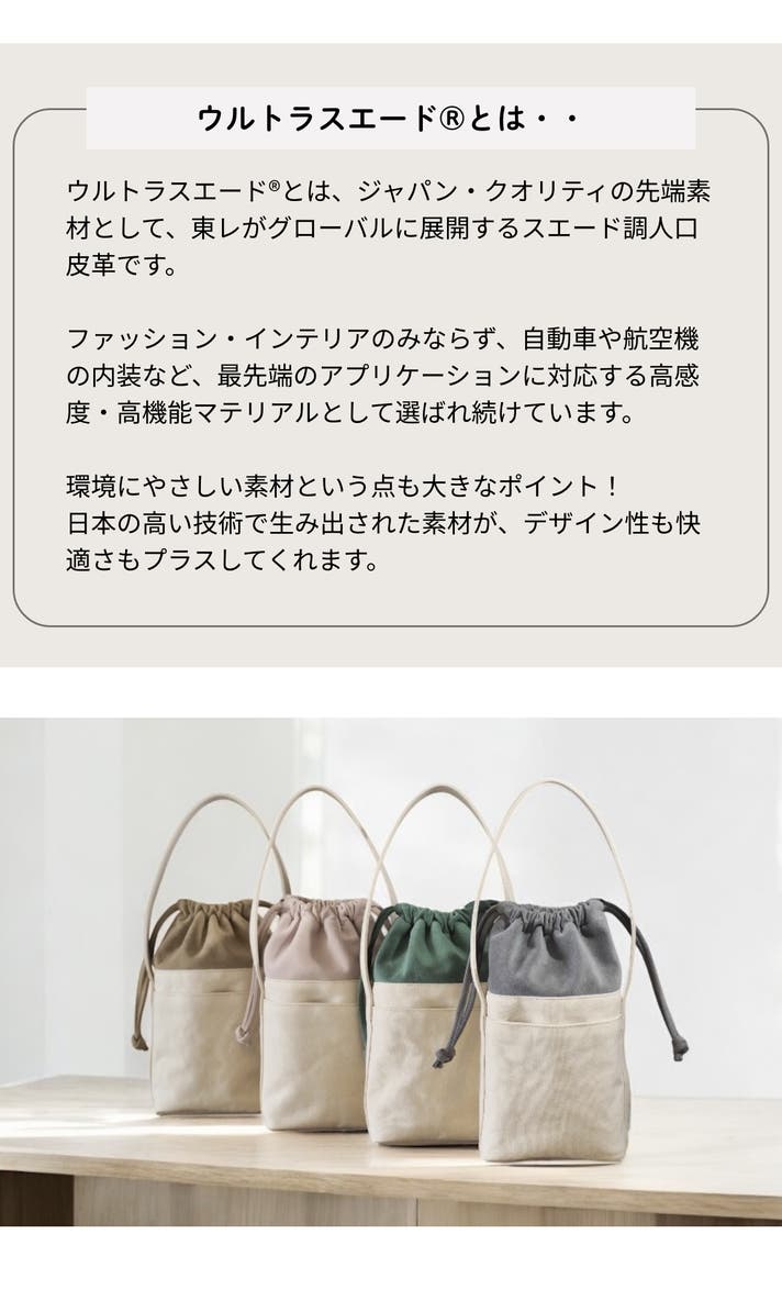 - 高級素材ウルトラスエード®と軽くて丈夫な8号帆布を合わせ、日常になじむ上品さをまとわせました。