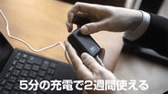 本体スティックは約5分の充電で約2週間使用(※)できます。パソコンやモバイルバッテリーで充電ができ、持ち運びに便利です。※当社測定値。使用環境や使用状況により異なります。