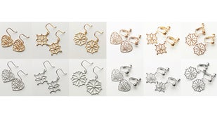 イヤリングとピアスをご用意しています。イヤリングはねじばね式金具ですので簡単に装着出来ます。