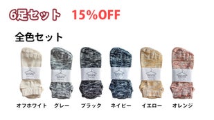 ■Sサイズ6足セット、オフホワイト/グレー/ブラック/ネイビー/イエロー/オレンジの全色セット