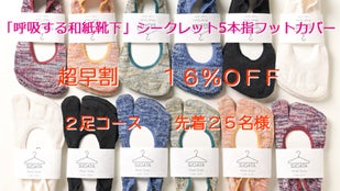 2020年春に公開し好評だった「呼吸する和紙靴下」シークレット5本指ソックスが、形を変えて「呼吸する和紙靴下」シークレット5本指フットカバーとして初登場です!!