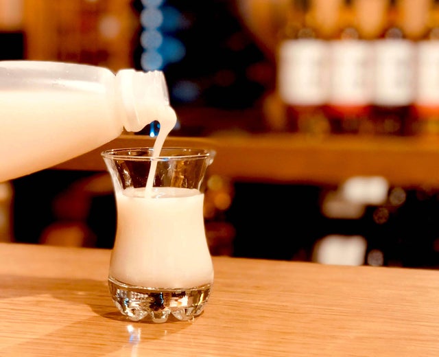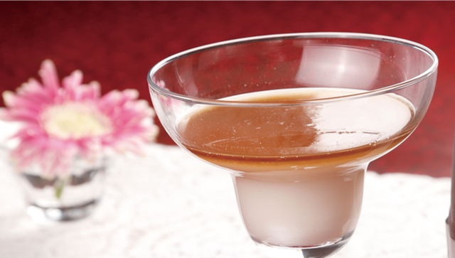 甘酒の表面にコーヒーリキュールを垂らしで、少しビターな大人のカクテルとして愉しめます。