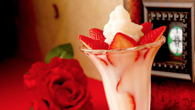 半解凍で苺を添えると、甘酒の旨味と苺の酸味が大人のデザートとして愉しめます。