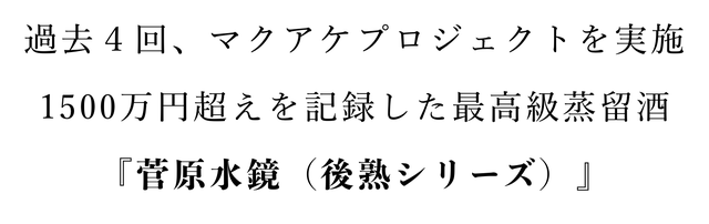 「Makuake(マクアケ)」は、実行者の想いを応援購入によって実現するアタラシイものやサービスのプラットフォームです。このページは、 フードカテゴリの 「日本の最高級蒸留酒『菅原水鏡 後熟』とマリアージュ。『菅原水鏡 生チョコ』登場。」プロジェクト詳細ページです。