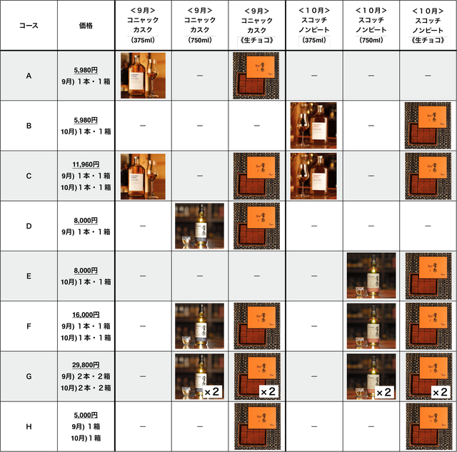 C【9・10月】コニャック375mlとノンピートスコッチ375mlと各種生チョコ