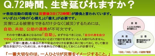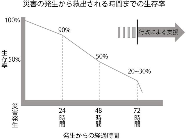 災害が起こって、遭難してから72時間が生存率の節目といわれております。