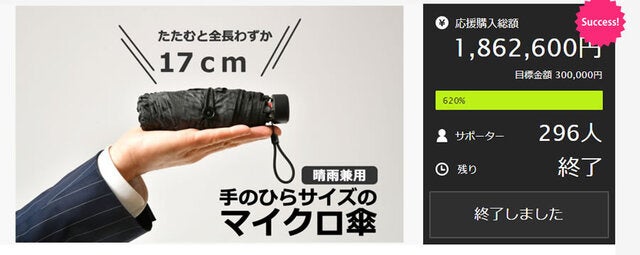 ▲2020年7月30日終了Makuakeプロジェクト。296名の方からご支援いただきました!