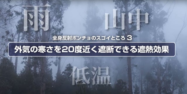 だから、暗闇で懐中電灯でも容易に探せるこの全身反射レインポンチョを着用していれば、小規模な捜索隊でも、早期発見が可能になります。