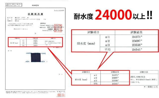 耐水度は、24000mm以上です。(一般的にかなり良いモノで5000mmくらいです。)