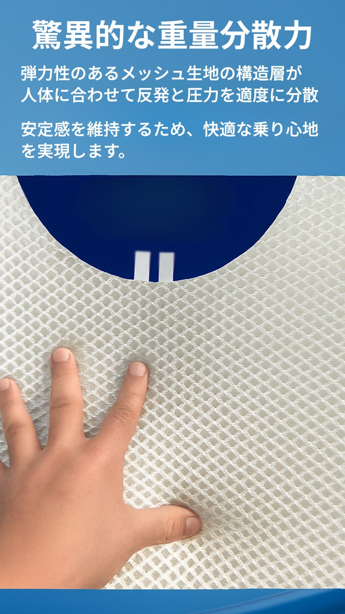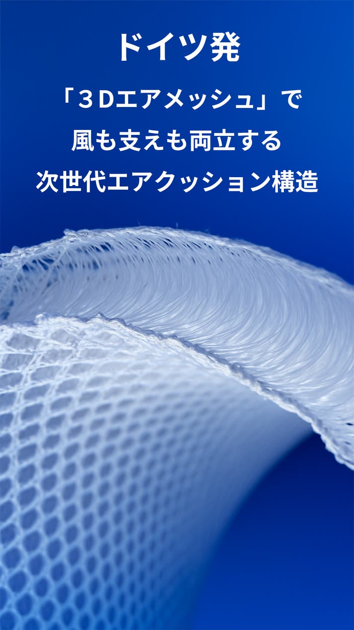体圧分散に優れた3Dエアメッシュ素材が、お尻や腰へとても優しくサポートします。