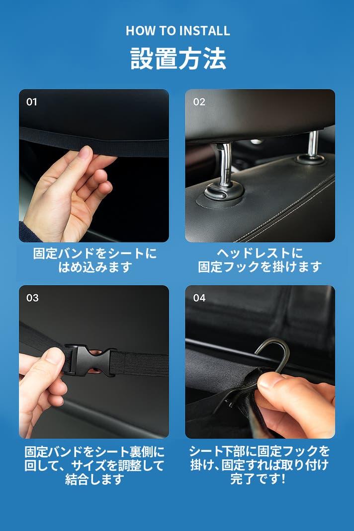 ご購入前にお使いの車のシートサイズをご確認ください。