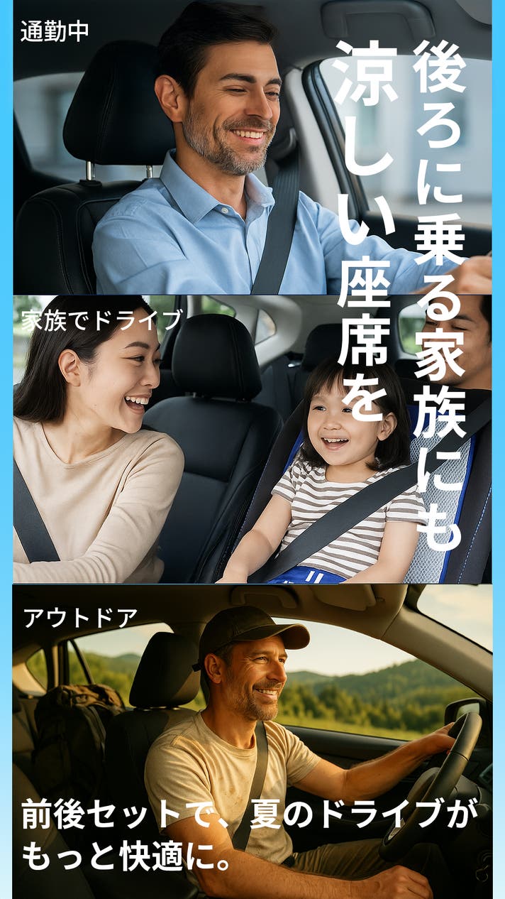 お一人様ドライブも、パートナーも、さらに家族全員が真夏の車の中を快適に過ごせる手助けになるアイテムです。