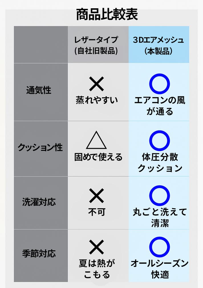 A. はい、3Dエアメッシュ素材は保温性にも優れており、冬でも快適にご使用いただけます。 空気層が体温をほどよく保ち、冷えすぎを防いでくれます。
