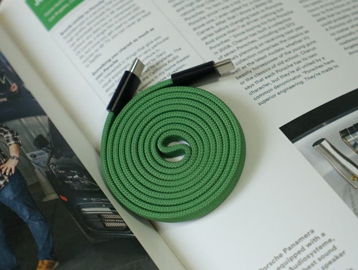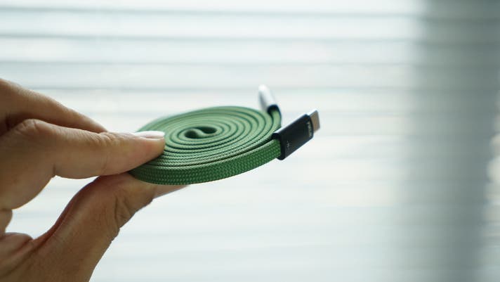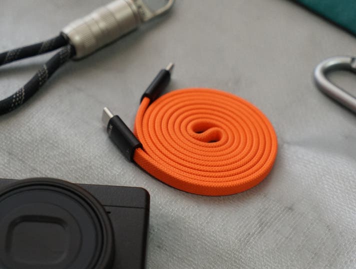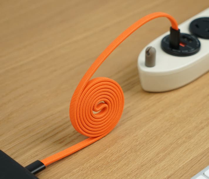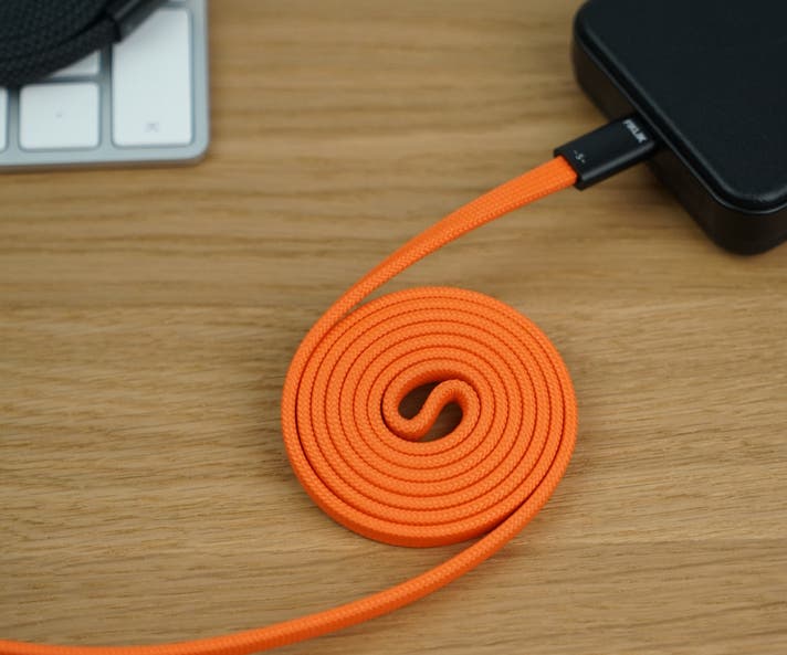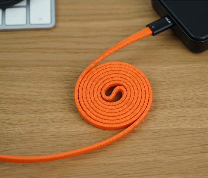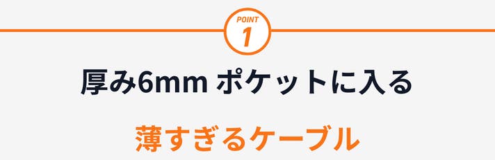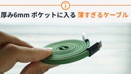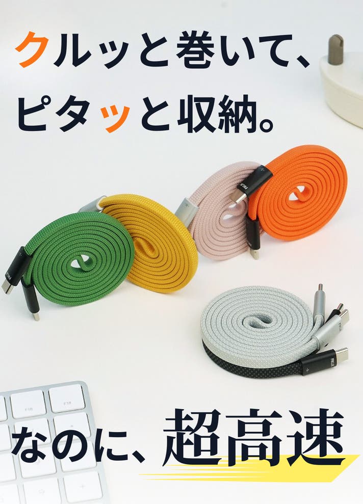 ケーブルが平らなフラット形状なので、巻いても厚みが出ずスッキリ収納。