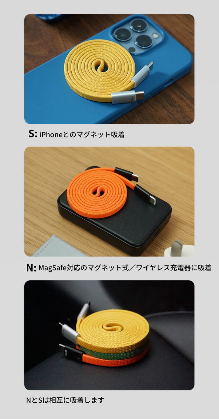 - 【ラク収納】磁力で瞬時にまとまる絡まらないケーブル