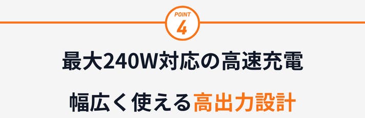 - 【速充電】最大240W対応でPCもスマホも高速チャージ