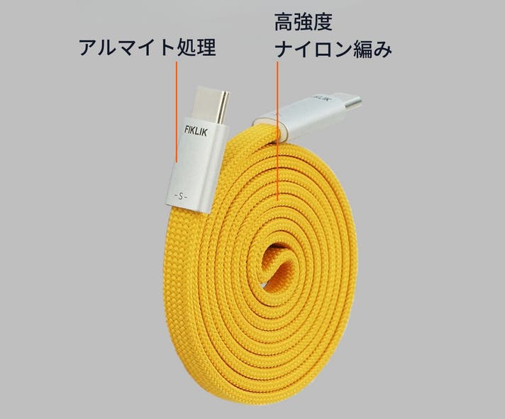 本製品は高耐久ナイロン編み込み+端子補強設計。