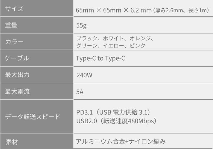 弊社最新のUSB-C PD 3.1規格に準拠し、なんと最大240Wまで対応。