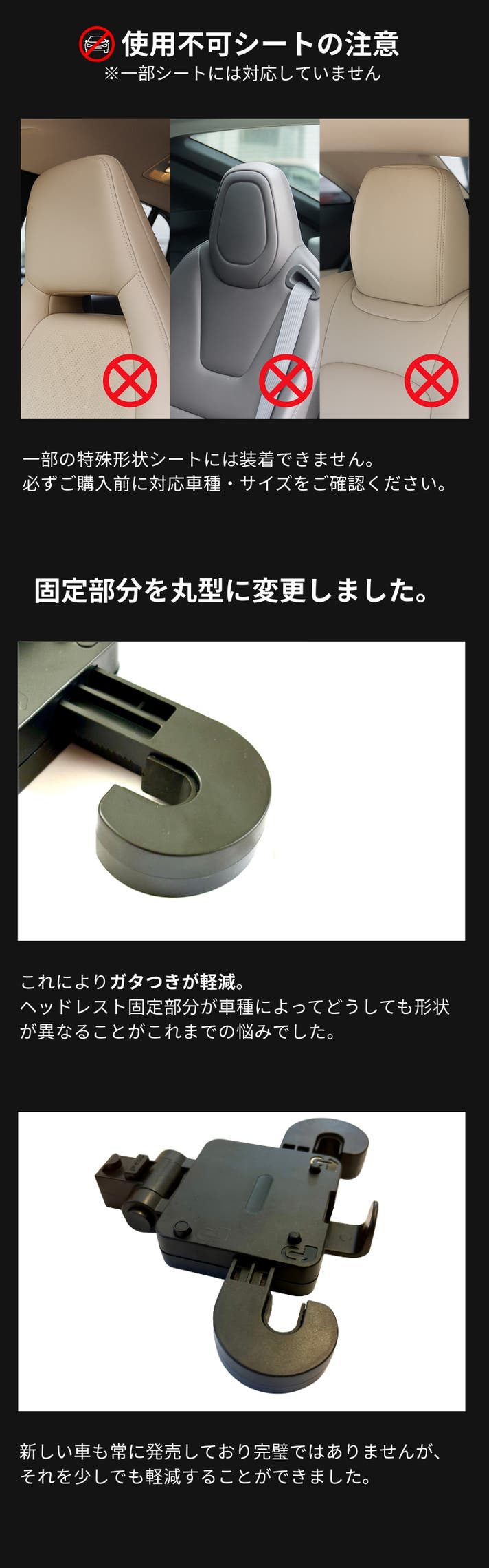A. 一部の一体型シートやヘッドレストが外せない車種では使用できません。