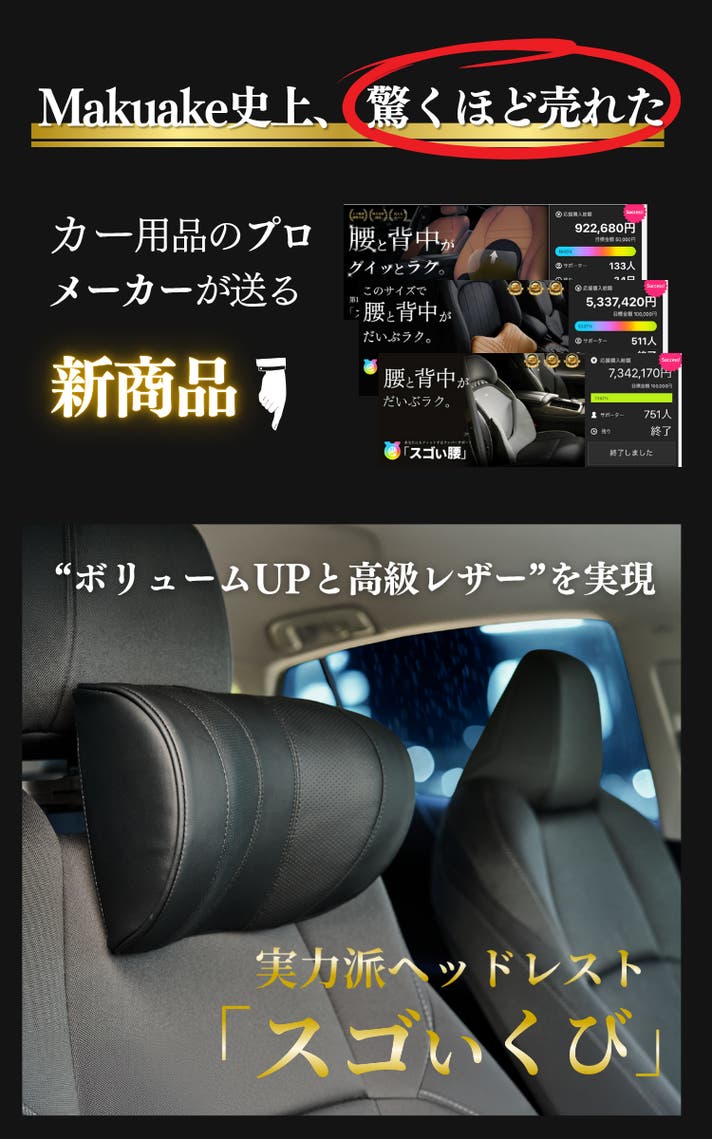 「Makuake(マクアケ)」は、実行者の想いを応援購入によって実現するアタラシイものやサービスのプラットフォームです。このページは、 プロダクトカテゴリの 「【シリーズ最新】運転中もクビの負担をケア◎角度が自由な高級レザーのヘッドサポート」プロジェクト詳細ページです。