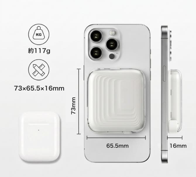A:従来の極薄モバイルバッテリーに比べ、容量と重さが増えているため、磁力が若干弱く感じます。