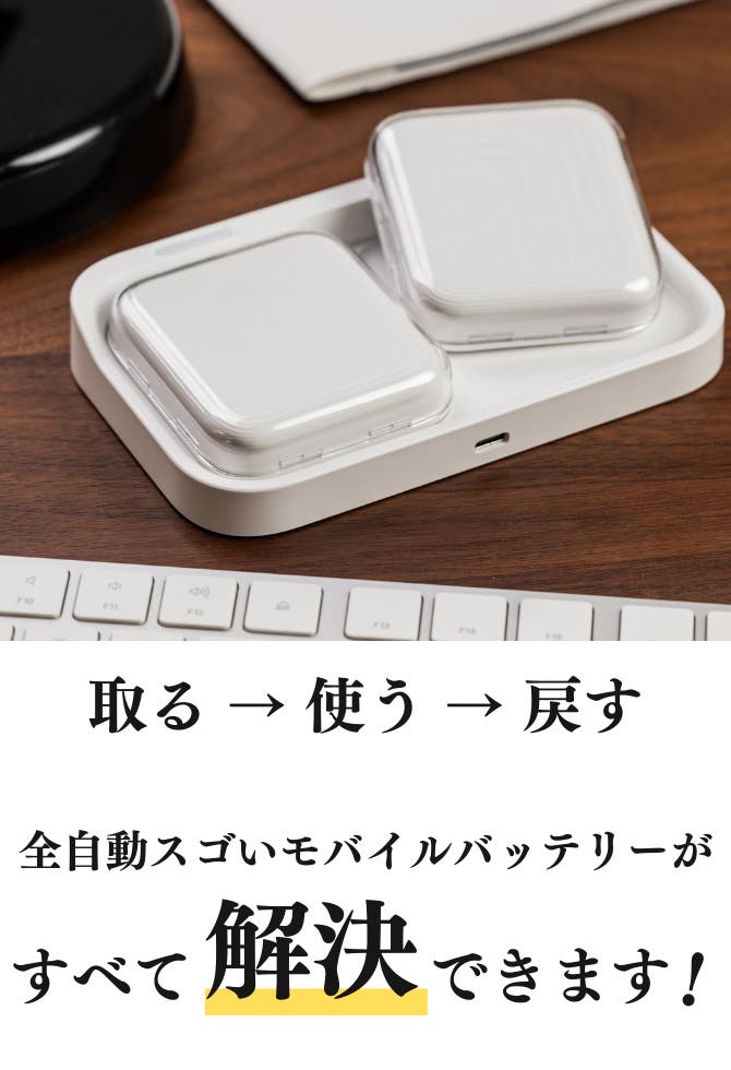 「Makuake(マクアケ)」は、実行者の想いを応援購入によって実現するアタラシイものやサービスのプラットフォームです。このページは、 プロダクトカテゴリの 「充電を気にしない【シリーズ最新】置くだけ自動×2台同時の次世代モバイルバッテリー」プロジェクト詳細ページです。