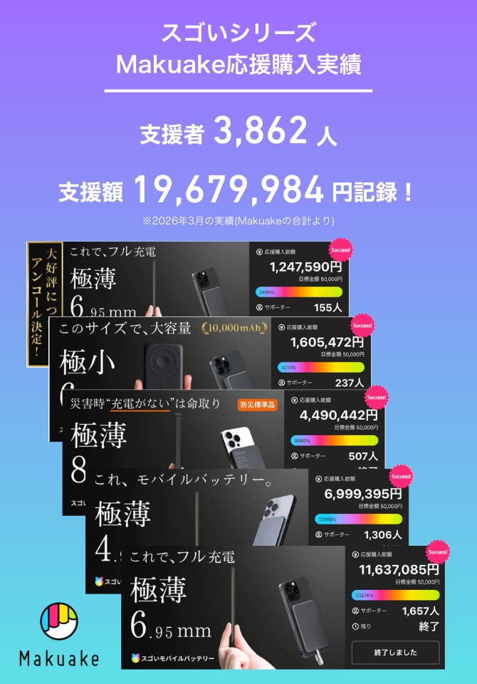全自動スゴいモバイルバッテリーの日本における独占販売権を有する正規代理店です。