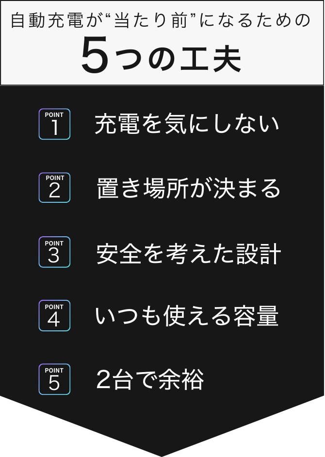 - 【全自動】置くだけで充電完了。何もしないが正解
