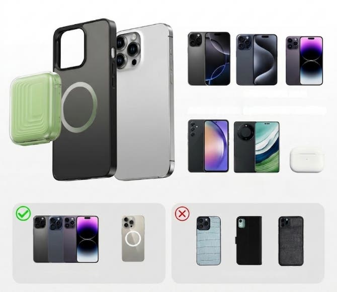 厚みのあるケースやMagSafe対応でも磁力の弱い場合は、MagSafeリングシールを使用してください。