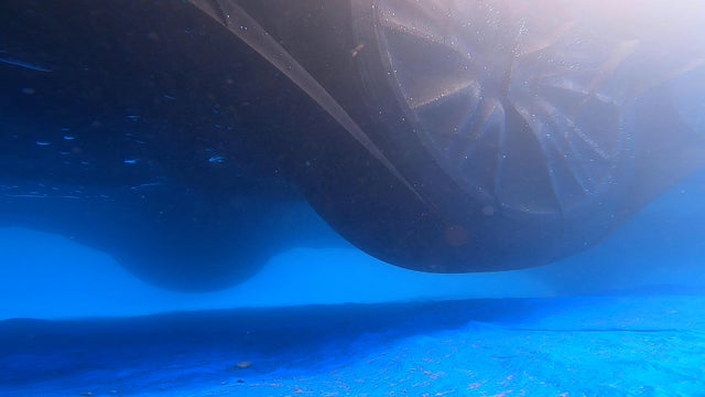 カーバッグで覆われた状態で、車は水の中で浮いてます。