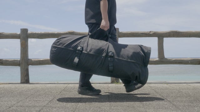 沖縄人だからわかる熱帯地域での灼熱のアスファルトの凄さや、急な集中豪雨に見舞われる「経験」を活かし、素材耐久試験だけでなく実際に水害を再現して、弊社本社の所在地沖縄にて実際にカーバッグの水没テストを行いました。