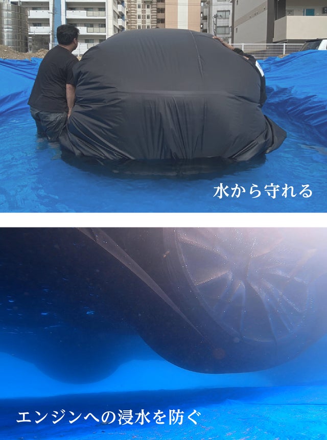 いざという時の備え、車体を丸ごとカバーして浸水を防ぐ