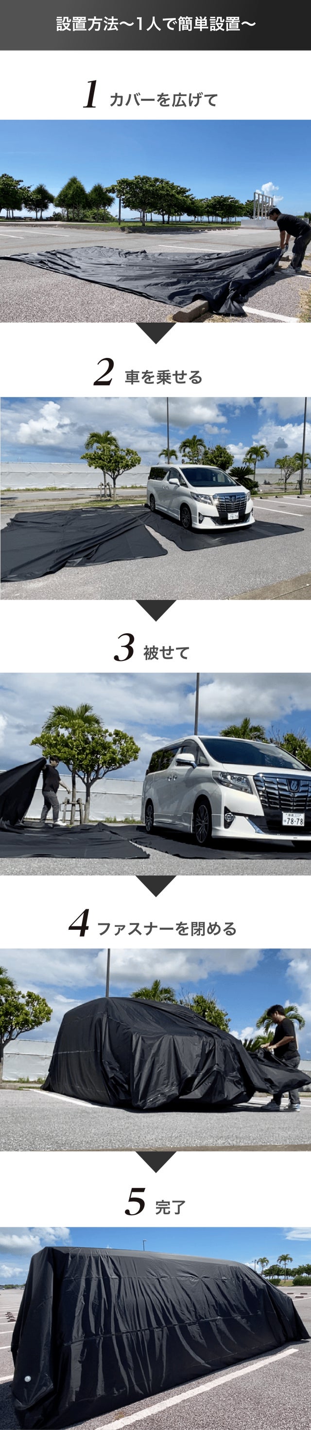 - 脱着簡単で1人でも作業が可能!専用収納袋があり繰返し使用も可能!