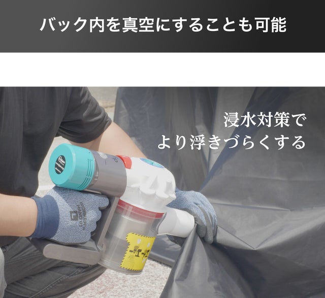 - 家財など車以外で水から守りたいバイク・家電も入る超大型バッグ!