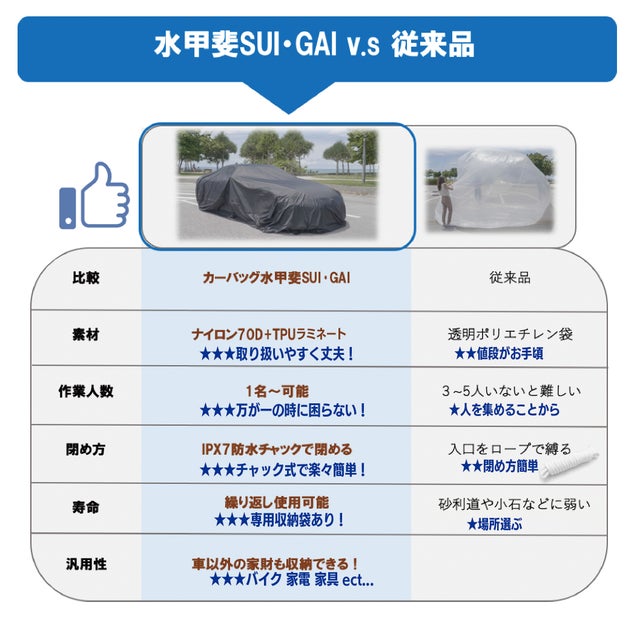 いざという時に、浸水から愛車を守る - カーバッグ 水甲斐SUI・GAI