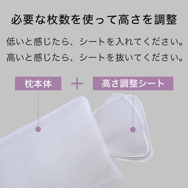 シートを抜き差しすることにより、枕の高さを自分の好みや体型に合わせてカスタマイズできます。