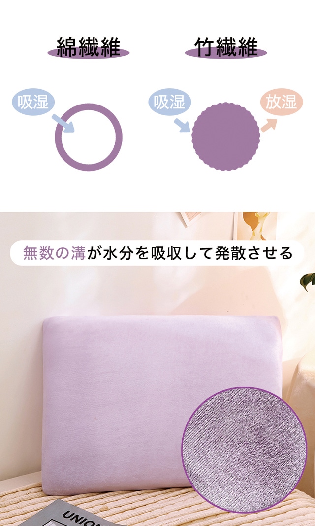 付属の枕カバーは自然の力を活かした竹繊維で作られています。