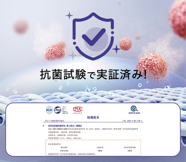 抗菌試験データでは、雑菌を効果的に除去できることが実証されました。
