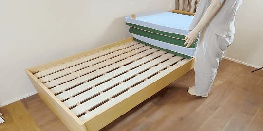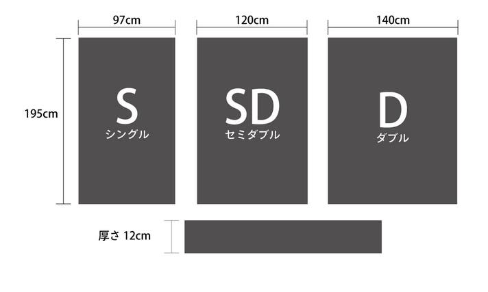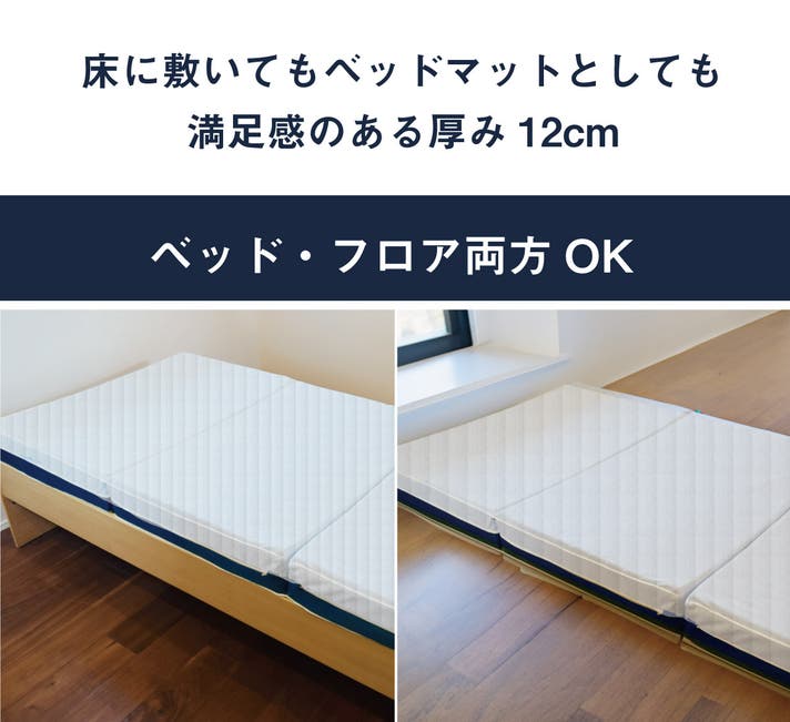 12cmのしっかりとした厚みがあるからベッドフレームに1枚で使っても床付き感が無く、