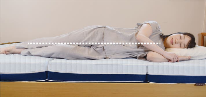 肩や腰回りは優しくフィットするため横向き寝でも理想的な寝姿勢をキープします。