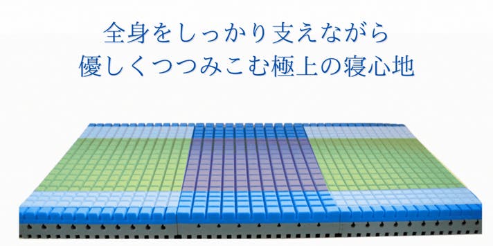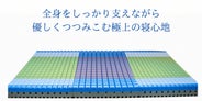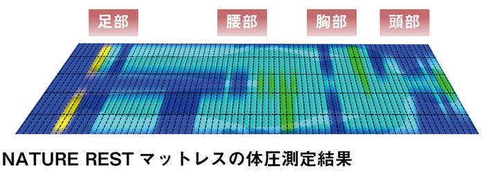 - 人間工学に基づき身体の部位ごとに硬さを調整。全身をしっかり支えながら理想的な体圧分散性を実現