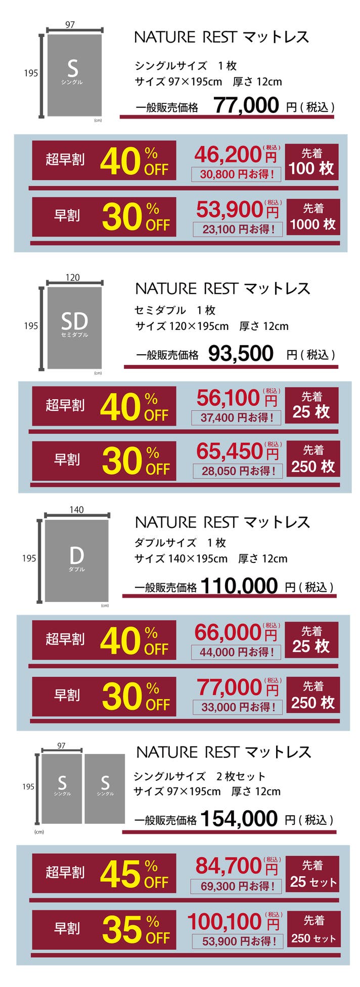 【早割30%OFF】Nature Restマットレス シングルサイズ