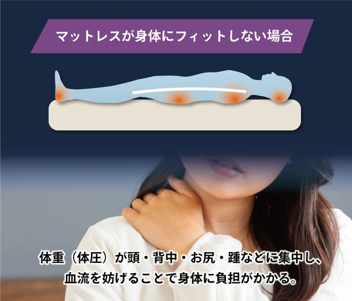 一般的なマットレス(※自社従来品)と比べて全身の設地面が大きく、