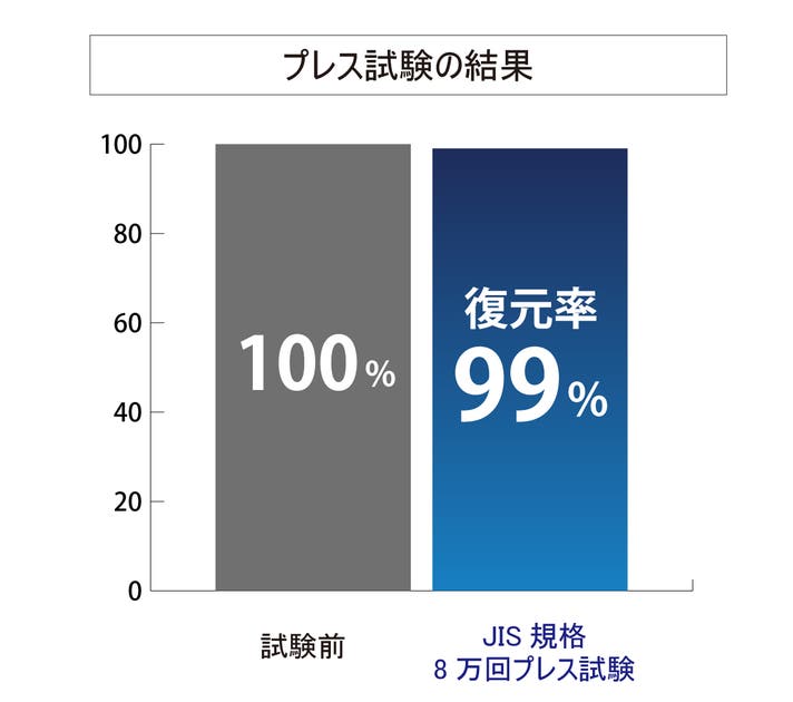 8万回のプレス試験で厚さの低下率=へたりがなんと1%以下。