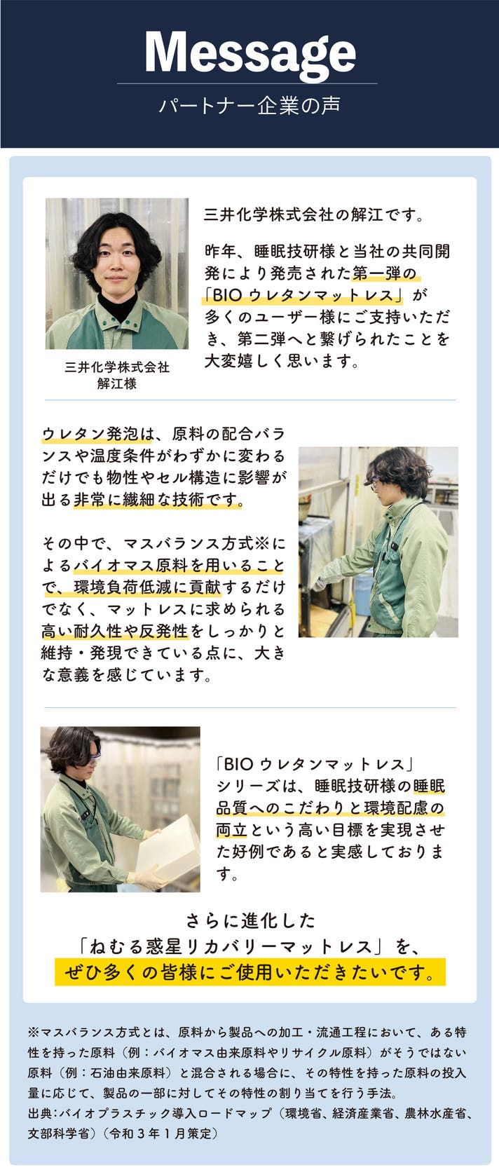マットレスの中材には三井化学と共同開発の独自素材