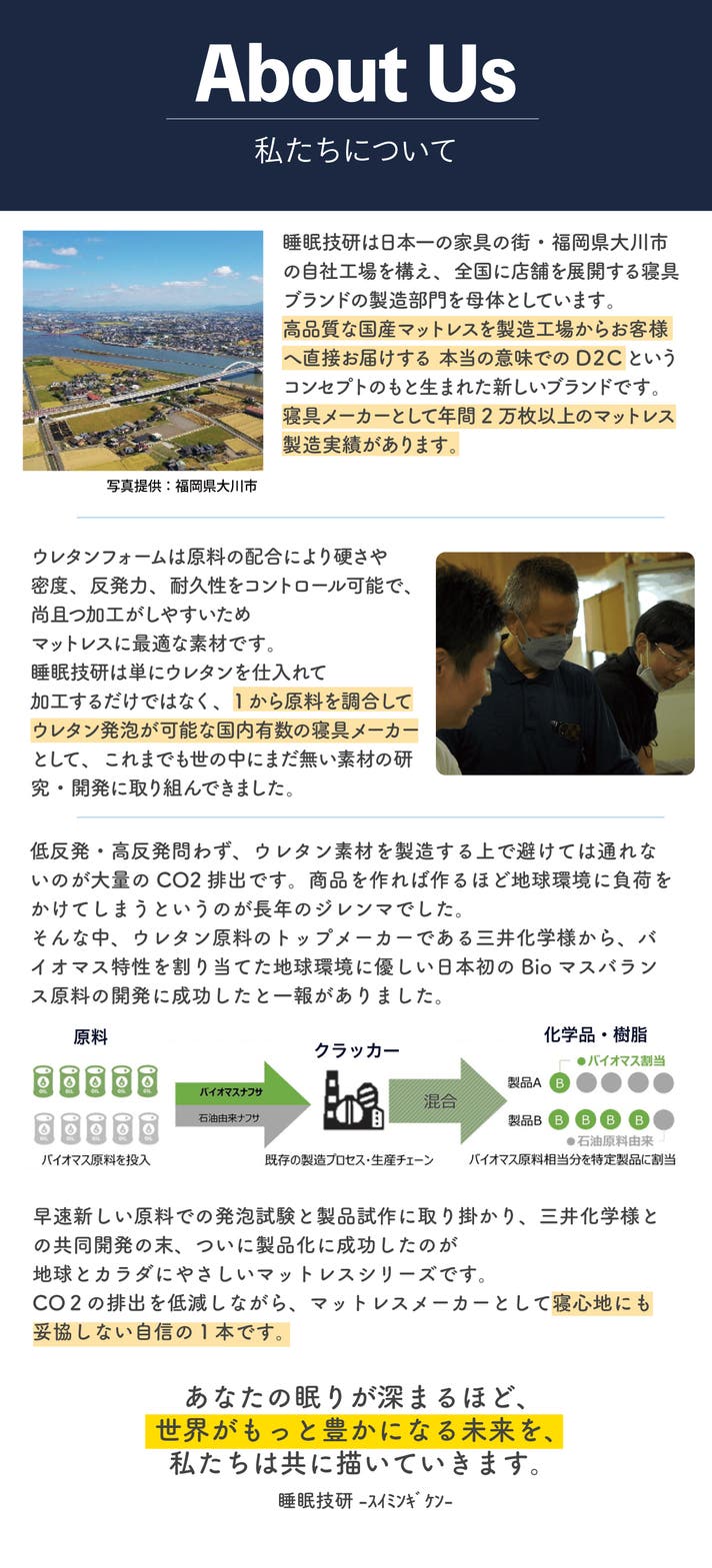 マットレス・枕などに使用されるウレタンフォームは製造工程で石油系の原料を大量に使用します。