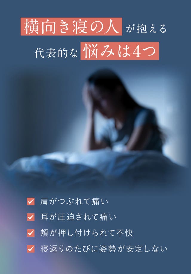 横向きで寝ると肩がつぶれる、首が詰まる、耳が痛くなる。